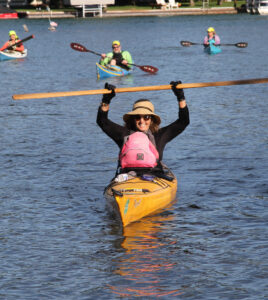 The festival has also become a celebration of the dedication of amazing volunteers who come back year after year to contribute to the success of the event. Art, a veteran hobby photographer, has been a part of the festival since the beginning. “My senior year of high school, in 1960, I won a box camera as a prize and have had the photography bug ever since,” Art smiles from this memory. We are grateful that he got the photography bug all those years ago. It’s through his lens that the vibrancy of the Festival comes alive—the friendship among participants, the smiling faces, the signature “paddler wave,” and the beautiful landscapes framing every stroke.