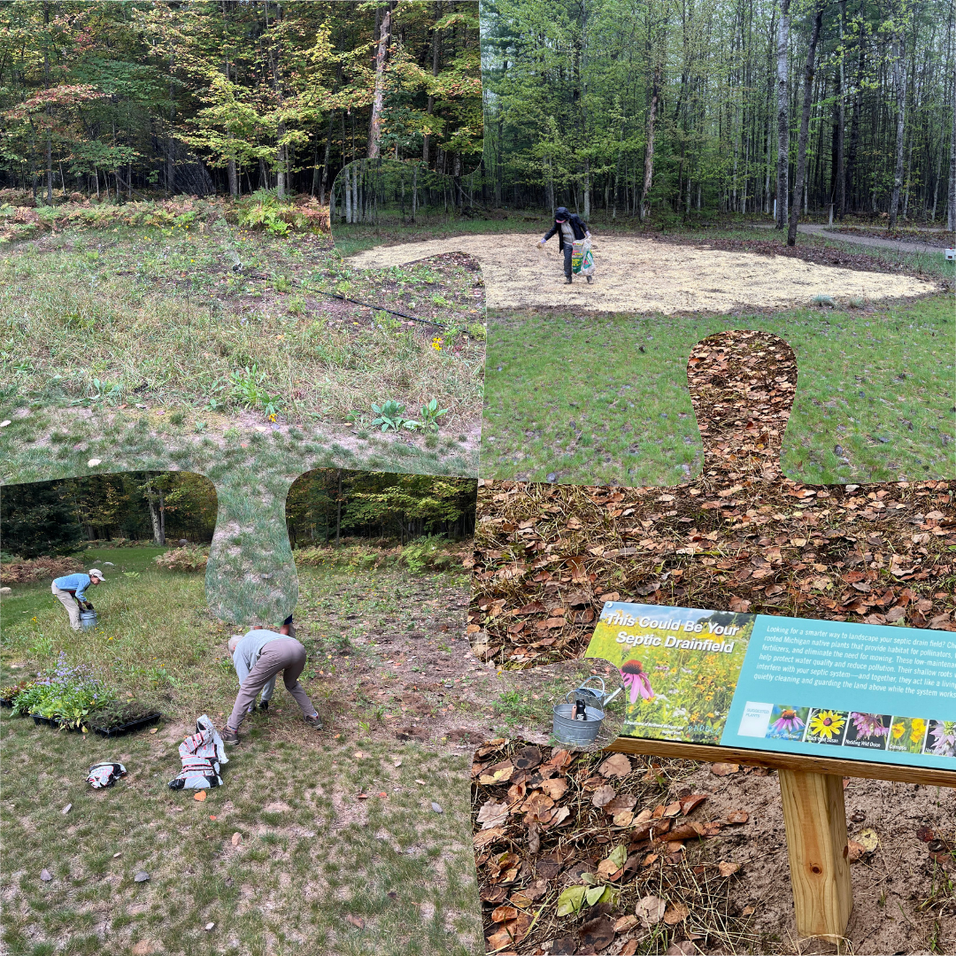 These grants are funded through a portion of the income earned from our classes and events, allowing us to reinvest back into the community through modest, meaningful gifts. In the fall of 2024, we were proud to award a Ripple Effect grant to the Grass River Natural Area (GRNA) and the Health Department of Northwest Michigan (HDNW) for a project that was officially completed at the end of 2025: the Septic-Safe Native Plant Demonstration Garden.